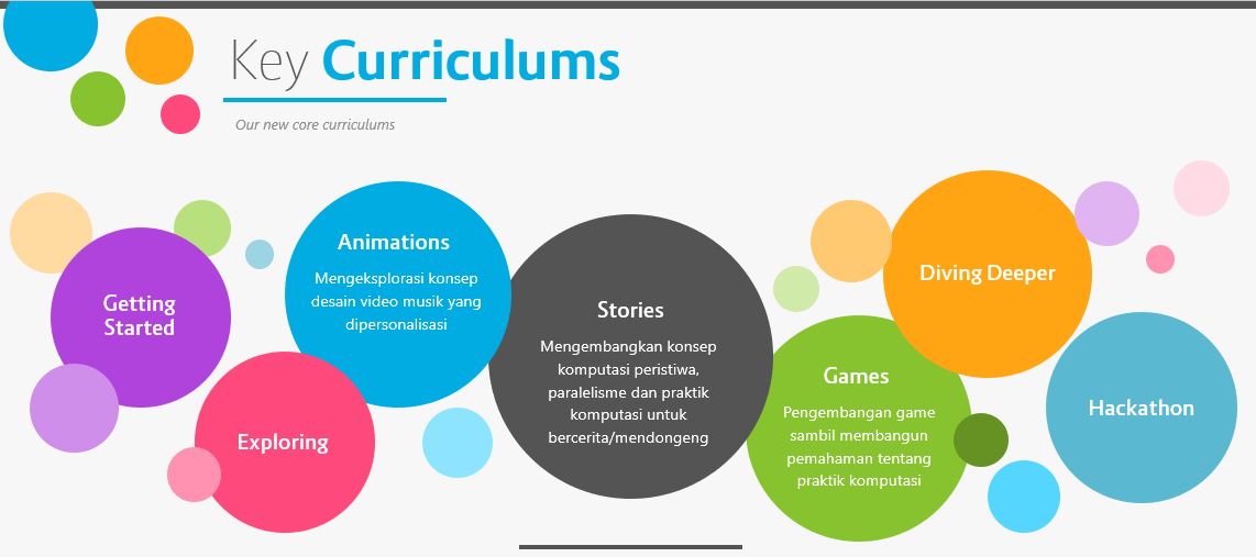 Kurikulum adalah kumpulan ide, strategi, dan kegiatan untuk pengalaman menggunakan bahasa pemrograman komputasi kreatif. Aktifitas dirancang untuk mendukung keakraban dan meningkatkan kelancaran dengan kreativitas dan pemikiran komputasi.
